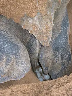 - ^ Caut, S.; Guirlet, E.; Jouquet, P.; Girondot, M. (2006). "Influence of nest location and yolkless eggs on the hatching success of leatherback turtle clutches in French Guiana" (PDF). Canadian Journal of Zoology. 84 (6): 908–916. Bibcode:2006CaJZ...84..908C. doi:10.1139/z06-063. hdl:2268/35790.