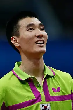Lee Sang-su (born 13 August 1990) is a South Korean table tennis player.[5] He won two singles titles at the ITTF Pro Tour, the first one was in 2010.[6] He reached semifinals in singles event at the 2017 World Championships.