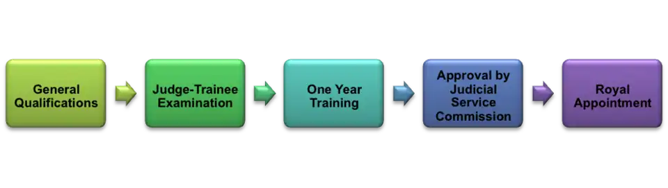 The process to becoming a career judge involves five stages.[31]