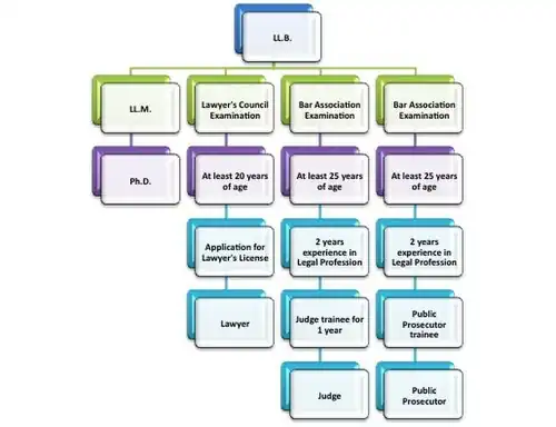 The main criteria for law graduates intending to be judges are: At least 25 years of age, an L.L.B., a Barrister-at-Law degree from the Bar Institute, and two years’ experience in the legal profession.[Note 10] Judge trainees then undergo training courses and serve as judges’ assistants for not less than one year.