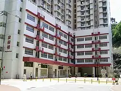 Lei Muk Shue Estate (Chinese : 梨木樹邨 ) is a public housing estate in Sheung Kwai Chung , Tsuen Wan , New Territories , Hong Kong, near the exit of Shing Mun Tunnels . It is the largest public housing estate in the Tsuen Wan District , with a population of 28,100 as of December 2021.[ 1] Although it is geographically located in Sheung Kwai Chung (literally means "Upper Kwai Chung"), administratively it belongs to the Tsuen Wan District[ 2] instead of the Kwai Tsing District because it is at the west of Wo Yi Hop Road, the boundary between the two districts.