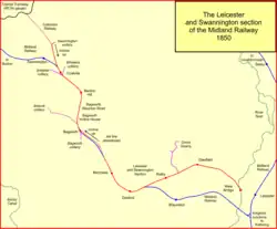 - ^ Mitchell, Vic; Smith, Keith (2016). Leicester to Burton – Midland Main Lines. Midhurst: Middleton Press. Caption to map Va. ISBN 978-1-908174-85-7.