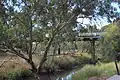 The Leigh River is a major tributary and catchment of the Barwon River. Fed by the Yarrowee River that rises near Ballarat, the Yarrowee reaches its confluence to form the Leigh in the vicinity of Cambrian Hill and Golden Plains Shire.[5] The Leigh River rises below Mount Mercer and flows generally south, joined by three minor tributaries before reaching its confluence with the Barwon River, southeast of the central business district of Inverleigh. The river descends 265 metres (869 ft) over its 61-kilometre (38 mi) course.[4][6]