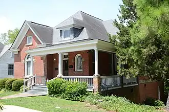 The Leiper-Scott House is a historic house at 312 South Pulaski Street in Little Rock, Arkansas. It is a single-story brick structure, with a hip roof adorned with gabled and hipped projections and dormers in an asymmetrical style typical of the Queen Anne period. A porch extends across part of the front around to the side, supported by Tuscan columns mounted on brick piers, with a balustrade between them. The house was built in 1902 for Eric Leiper, owner of a local brickyard, and is locally unusual as a relatively modestly-scaled house built in brick.[2]