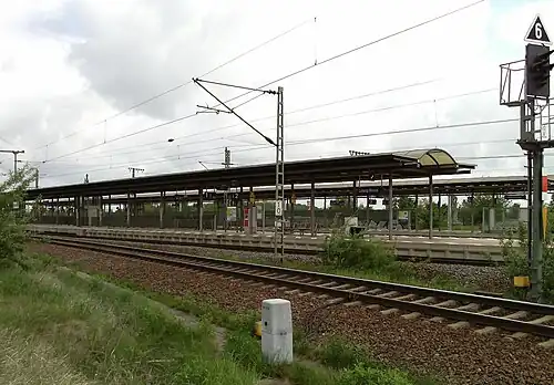 Leipzig Messe (German: Bahnhof Leipzig Messe) is a railway station located in Leipzig, Germany, serving the Leipzig Trade Fair. The station is located on the Trebnitz–Leipzig railway. The train services are operated by Deutsche Bahn. Since December 2013 the station is served by the S-Bahn Mitteldeutschland.