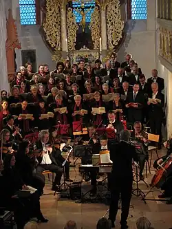 The orchestra's principal conductor in the 2018/19 season was Nicolas Krüger[3] who, however, resigned from his post already in 2019.[4] Previously held this office Karl-Gerhard Seher, Rainer Kluge, Günter Neidlinger, Horst Neumann, Ruben Gazarian (1999–2002), Markus Huber (2003–2009), Frank-Michael Erben (2009–2015) and Wolfgang Rögner (2015–2018).