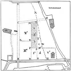 In 1920 the Italian architect and politician Luca Beltrami, relying on historical documents, was able to describe the likely position of the original vineyard, which ran probably parallel to the current Via De Grassi (De Grassi Street).[4] He photographed the vineyard that was then on the same spot when cultivations were beginning to be eradicated; at that time a resolution passed to subdivide the territory in lots to build new constructions.[5]