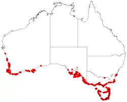 L. gladiatum in coastal regions around Australia in the States of New South Wales, Victoria (Australia), Tasmania, South Australia and Western Australia. In Southwest Australia it can be found as far north as Cervantes and as far east as Cape Arid National Park.[5]