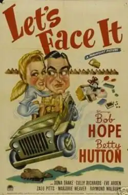 Let's Face It is a 1943 American musical comedy film directed by Sidney Lanfield and written by Harry Tugend, adapted from the musical of the same name. The film stars Bob Hope, Betty Hutton, ZaSu Pitts, Phyllis Povah, Dave Willock, Eve Arden, and Cully Richards. The film was released on August 5, 1943, by Paramount Pictures.[1][2] A New York Times critic at the time of its release wrote, "Strictly as hot-weather fare, Let's Face It, now at the Paramount, is an acceptable bit of monkeyshines, but not much more. As a vehicle for Bob Hope it is a rather feeble and outdated contraption, and if it weren't for Mr. Hope himself Let's Face It would be a very sad affair indeed."[3][4]