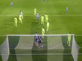 On 26 October 2011, during round nine of the season, Levante defeated Real Sociedad 3–2 to move top of the first division table for the first time in the club's history, with 23 points.[22] In the process, it recorded seven straight wins after drawing its first two games.[23] The club eventually finished sixth after defeating Athletic Bilbao 3–0 at home in its last match, thus qualifying for the UEFA Europa League for the first time in its history.[24] There, they made it to the last 16 before a 2–0 extra-time loss to Russia's FC Rubin Kazan.[25]
