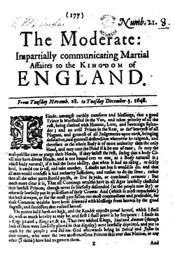 The Moderate[29] was a newspaper published by the Levellers from July 1648 to September 1649.[3]