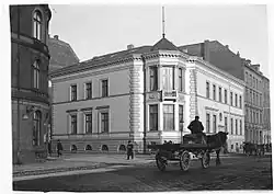 In 1859 the Navy decommissioned their last operations at Gammelholm, and the area was designated for residential redevelopment.[1] The city's initial plan was to reserve it for large villas in an attempt to keep wealthy tax-payers within the municipal borders since they were increasingly settling in Frederiksberg or in the northern suburbs. The grocer and bankier Martin Levin bought a lot on the waterfront and charged the architect Johan Daniel Herholdt with designing a house which was built in 1865–66.[2] Due to the difficult economic times that followed from Denmark's involvement in the Second Schleswig War, it was the only detached single-family house-with-garden that was built in the area. Gammelholm was instead built over with apartment buildings according to a master plan created by Ferdinand Meldahl. An expansion of the house incorporated it into the block structure of the new plan.[3]