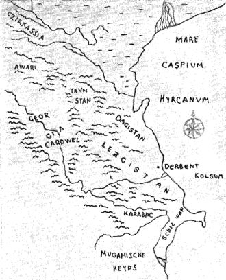 While ancient Greek historians, including Herodotus, Strabo, and Pliny the Elder, referred to Legoi people who inhabited Caucasian Albania, Arab historians of 9-10th centuries mention the kingdom of Lakz in present-day southern Dagestan.[2] Al Masoudi referred to inhabitants of this area as Lakzams (Lezgins),[3] who defended Shirvan against invaders from the north.[4]