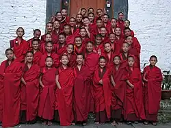 The monastery was originally established by Pema Lingpa's son Kuenga Wanpo in 1543, although it wasn't until 1654 that the Trongsa penlop (governor), Minjur Tenpa, built a formal dzong here after winning a battle and named it Lhuentse Rinchentse.[1] The dzong was later restored in 1962 and again between 1972 and 1974.[1] The historic importance of Lhuentse Dzongkhag is on account of its established link as the ancestral home of the Wangchuck Dynasty. Lhuentse town is the administrative capital of Lhuentse District, besides the Lhuentse Dzong.[8] At present 100 monks reside here.[3]