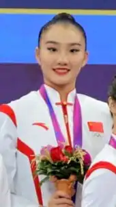 In April 2023 she competed at the World Cup in Tashkent, finishing 24th in the All-Around, 21st with hoop, 33rd with ball, 20th with clubs and 23rd with ribbon.[3] In July she took part in the 2021 Universiade in Chengdu, being 7th in the All-Around, and 4th in both the hoop and ball finals.[4][5] In October she won bronze in team, along Wang Zilu, Zhao Yating and Zhao Yue, at the 2022 Asian Games in Hangzhou.[6] In November she took silver with ribbon and gold with clubs at nationals.[7]