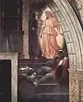 The Liberation of Saint Peter is a fresco painting by the Italian High Renaissance artist Raphael.[1] It was painted in 1514 as part of Raphael's commission to decorate with frescoes the rooms now known as the Stanze di Raffaello, in the Apostolic Palace in the Vatican. It is located in the Stanza di Eliodoro, which is named after The Expulsion of Heliodorus from the Temple. The painting shows how Saint Peter was liberated from Herod's prison by an angel, as described in Acts 12. It is technically an overdoor.