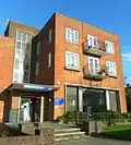 Branch libraries were established from the 1930s onwards in the suburbs and housing estates around Hove and Brighton. In many cases temporary facilities were used at first: for example, a shop was used in Woodingdean,[32] a temporary facility was set up in Whitehawk during its rapid development in the 1930s,[33] and a church hall in Hangleton doubled as a library.[34] Most permanent libraries date from the 1960s and 1970s: examples include Portslade (1961), Hangleton (1962), Moulsecoomb and Westdene (both 1964). Buildings of that vintage in Coldean, Whitehawk and Woodingdean have in turn been replaced by new mixed-use buildings in the 21st century.[4][32][35] Not all libraries opened in the postwar era were purpose-built. Hollingbury's library occupies a former pub which was in turn converted out of wartime prefabs;[4] the 18th-century vicarage in Rottingdean became the village's library in the 1950s;[36] and nearby Saltdean's library occupies part of Saltdean Lido.[4] A branch library was also planned for the northeast of Hove, near St Ann's Well Gardens, in the 1960s. A plan submitted in 1962 proposed a library with residential accommodation above, next to St Thomas's Church on Davigdor Road. The building would have encroached on St Ann's Well Gardens, and public opposition to this meant the Davigdor Branch never went ahead.[37]