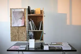 The project is frequently featured at book fairs, independent publishing conferences and schools, appearing at Miss Read Berlin Art Book Fair,[14] Stadtbibliothek Stuttgart,[15] Merz Akademie, Printed Matter's NY Art Book Fair,[16] Offprint London,[17] Theorizing the Web,[18] Interrupt 3 at Brown University, The Internet Yami-Ichi,[19] Printed Matter's LA Art Book Fair,[20] Odds and Ends Art Book Fair at Yale Art Gallery, Rhode Island School of Design[21] School of Visual Arts, International Center of Photography, School of the Museum of Fine Arts Boston and Offprint Paris.[22] In 2013 Library of the Printed Web was featured at Theorizing the Web and The Book Affair[23] at the opening of the 55th Venice Biennale.