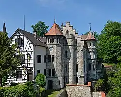 The "Leckzapfen" vineyard house constructed at Osthofen in 1891 in Worms in Rhenish Hesse is almost a miniature version of the main building of Lichtenstein Castle.[22]
