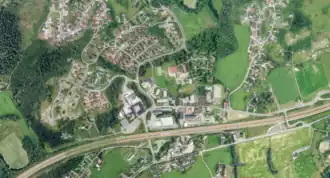 The old village centre was situated near Lierskogen Church (Lierskogen kirke). The church dates from 1937. The edifice is masonry and seats 150. Around it was the several businesses: Gravdal bakery, Heia children school (for children aged 7–12), a post-office and a petrol station. In 1985 Lierskogen had a population of only 800 people. But it was around this time a great building boom began.[1]