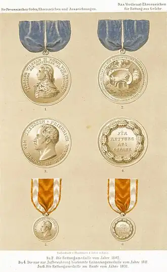 ![]() Versions of the Kingdom of Prussia's Lifesaving Medals | |