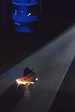 - Image Capture: The camera shutter is set to a long exposure or can be opened and closed manually. As the subject moves through the illuminated plane, it is recorded on the film. This process is very much like painting an image onto the film using photons instead of paint.[5][7]