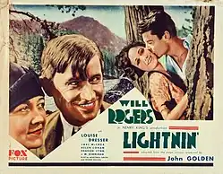 Lightnin' is a 1930 American pre-Code comedy film directed by Henry King and written by S. N. Behrman and Sonya Levien. The film stars Will Rogers, Louise Dresser, Joel McCrea, Helen Cohan, Jason Robards Sr. and Luke Cosgrave. The film was released on December 7, 1930, by Fox Film Corporation.[1][2][3] It is a remake of the 1925 silent film, which was directed by John Ford, which itself was based on the 1918 play.