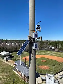 A lightning prediction system is a type of lightning detection equipment that determines when atmospheric conditions likely to produce lightning strikes and sounds an alarm, warning those nearby that lightning is imminent and giving them the chance to find safety before the storm arrives in the area. Lightning protection systems are often installed in outdoor areas which are often congested with people, lack sufficient shelter, and are difficult to evacuate quickly (such as water parks, college campuses, and large swimming pool or athletic field complexes). These locations are particularly dangerous during lightning storms. Prediction systems are prone to false alarms as they respond to conditions that are not always attributed to a developing thunderstorm. Electric field data is typically used in conjunction with detection information to limit false positives.