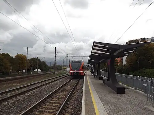 Lilleküla railway station (Estonian: Lilleküla raudteepeatus) is a railway station in the Kristiine district of Tallinn, the capital of Estonia. The station is situated between the subdistricts Lilleküla and Uus Maailm, and close to the Estonian national football home ground A. Le Coq Arena and Kristiine Keskus, one of the biggest and most popular shopping centres in Tallinn.
