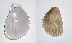 The shells are obliquely trigonal, and strongly radially ribbed, the ribs scabrous to spinose.