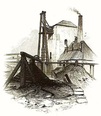 While the high human cost of mining coal is not the topic of this article, this colliery was notorious for its frequent mining disasters, owing to its proximity to a gas field. "Fizzers" emitted large quantities of methane — much more than in ordinary fire damp — which had to be vented to the surface and flared, as in a modern oil well (see illustration, Fiery mine at night). The precaution was not always successful; in one explosion 102 men and boys were killed, leaving 73 widows and children without support.[109]