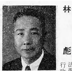 Lin Biao (Chinese: 林彪; pinyin: Lín Biāo; 1889-?) was a politician, judge and lawyer in the Republic of China. He was an important person in the Wang Jingwei regime (Republic of China-Nanjing). His courtesy name was Liyuan (禮源). He was born in Xiangshan (Zhongshan), Guangdong, Qing dynasty.