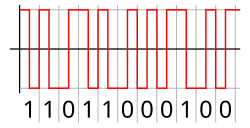 - the line-coded signal can directly be put on a transmission line, in the form of variations of the voltage or current (often using differential signaling).