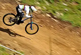 In mountain biking the line of greatest slope defines the fall line, which is the path a trail will follow to descend a hill or mountain with the shortest path,[1] and will also cause the rider to gain the most velocity (assuming brakes are not used, and other factors such as rolling resistance are equal).
