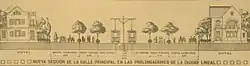 The linear city is an urban plan for an elongated urban formation that was proposed by Arturo Soria y Mata in 1882.[1] The city would consist of a series of functionally specialized parallel sectors. Generally, the city would run parallel to a river and be built so that the prevailing wind would blow from the residential areas to the industrial strip. The sectors of a linear city would be: