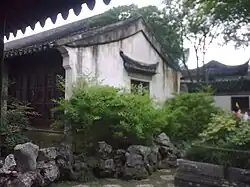 Named after a line by Zhu Shi (Song dynasty), "The water is imbued with green, forests have become more red...".[2] The name alludes to the numerous pines added to the garden during the second phase of construction. The typical farmhouse design typology, three bay with flat eves and full gables, of the villa reinforces the idea of a rustic retreat. |
