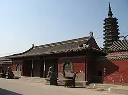 Linji Temple (simplified Chinese: 临济寺; traditional Chinese: 臨濟寺; pinyin: Línjì Sì) is a Buddhist temple located in Zhengding Town of Zhengding County, Hebei, China.[1] In the mid-Tang dynasty (618–907), Linji Yixuan founded the Linji school, which eventually became one of the five major schools of Buddhism in China. In the Song dynasty (960–1276), two Japanese monks Eisai and Shuniyo introduced Linji school to Japan.[2][3] Linji Temple is the cradle of Linji (Rinzai) school of both Chinese and Japanese Buddhism.[4] The temple was added to National Key Buddhist Temples in Han Chinese Area's list in 1983. The eldest thing in the temple is the Chengling Stupa, which still preserves the architectural style of the Liao and Jin dynasties (916–1234).[5][6]