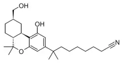 An analgesic CB1 agonist derived from Δ8-THC substituted with a side chain on the 3-position, roughly 100 times as potent as THC. | ||