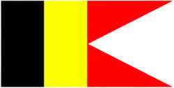 The rectangular tricolour of Belgium with split fly on the end