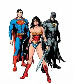 The DC Comics' Earth One imprint features an extensive cast of characters which are re-imagined and modernized versions of the company's superheroes and supervillains from the DC Universe.[1] Those characters include Superman, Batman, Wonder Woman, Green Lantern, and the Teen Titans, as well as others whose characteristics and origin stories are revised and altered to suit the 21st-century audience.
