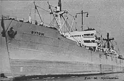 Empire Hunter was a 5,967 GRT cargo ship, built by William Pickersgill & Sons Ltd, Sunderland. Launched on 11 September 1942 and completed in November 1942. To the Polish Government in 1943 and renamed Borysław. To Polskie Linie Oceaniczne in 1950 and renamed Bytom. Sold in 1963 to Rejonowe Zakłady Zbożowe PZZ. Converted to a floating warehouse, based at Szczecin and renamed MP-PZZ-2. Sold c. 1970 to Zakłady Obrotu Zbożami Importowanymi i Eksportowymi PZZ.[50]