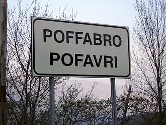 A bilingual street sign in Italian and FriulianBilingual road sign (Italian and Friulian) near San Vito al Torre