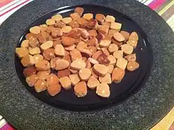 | Gebrannte Mandeln | Nuts (usually almonds) that have been spiced and candied so they end up coated in a layer of caramelized, crunchy sugar. | |