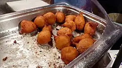 Small, fried dough balls made from a batter containing a lot of quark. Unlike doughnuts, they are made without yeast. |