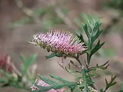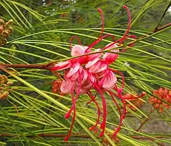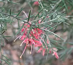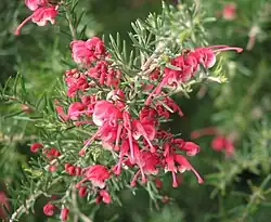 | 'Pretty Pink' | Grevillea arenaria x G. 'Crosbie Morrison'. Introduced in Victoria in 1985. | [2] | ||