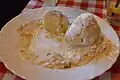 Szilvásgombóc and Nudli, which are sweet plum dumplings and small noodles, rolled in sweet fried breadcrumbs or streusels. | |