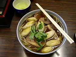 Kamo nanban: Soba with sliced duck breast, negi (scallions) and mitsuba