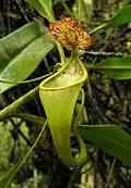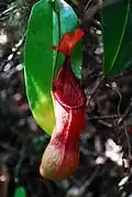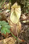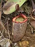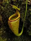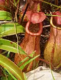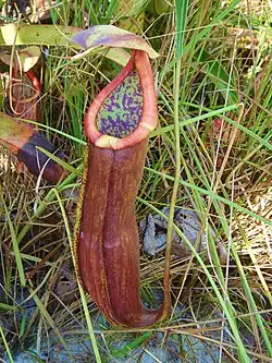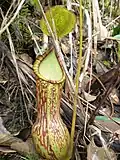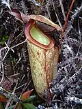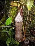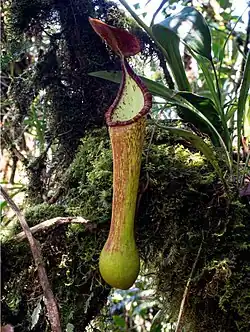 The official IUCN conservation status of each species is taken from the latest edition of the IUCN Red List.[1] Unofficial assessments based on the IUCN criteria are also included, but are presented in italics. Unless otherwise noted, taxonomic determinations and all other information are sourced from Stewart McPherson's two-volume Pitcher Plants of the Old World, published in 2009.[2] Where recent literature provides an altitudinal distribution that falls outside the range given in Pitcher Plants of the Old World, the discrepancy is noted.