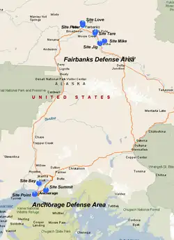 | Point | Nike 4AK/16L-H | Anchorage | Anchorage, Alaska (10 mi SW) | April 1959 – May 1971 | Obliterated; concrete slabs remain. 61°09′18″N 150°03′21″W / 61.15500°N 150.05583°W |