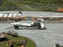 This list is sorted by state. The "Missile type" code indicates the numbers and types of missiles and other installation details. For example, "2AK/18L-H" means the site contained two Nike Ajax magazines (A), located above ground (K), with eight launchers (8L) being converted to Nike Hercules (H). Many listings will have "FDS" following either the control site or launch site heading, which means that the site has gone through the "Formerly-Used Defense Site" program and has been transferred from DoD control to another party. With the exception of Alaska, in which sites were given a specific name, Nike missile sites were designated by a coding system of the Defense Area Name abbreviation; a two-digit number representing the degree from north converted to a number between 01 and 99 (North being 01; East being 25; South being 50; West being 75), and a letter, L = launch site, C = IFC (Integrated Fire Control) site. The Formerly Used Defense Sites (FDS) program processed many former sites and then transferred them out of Defense Department control.[8]